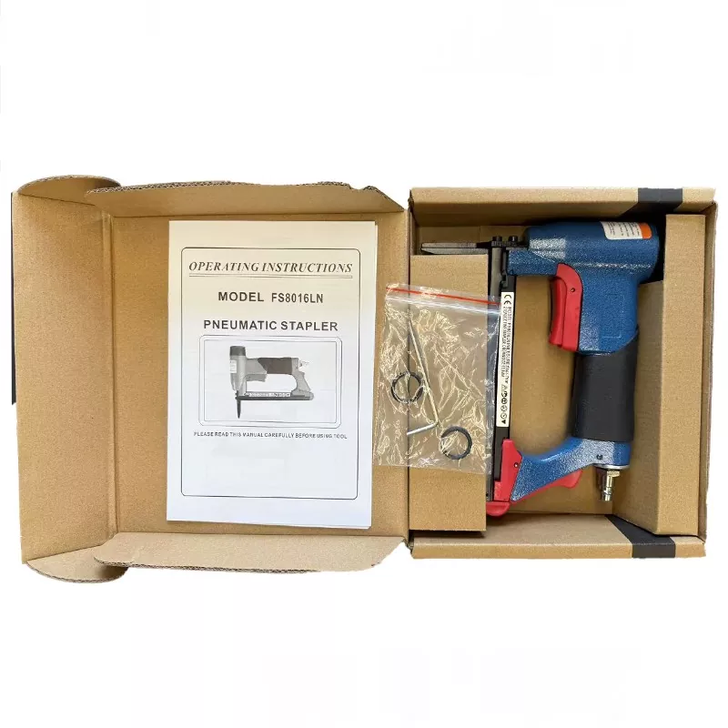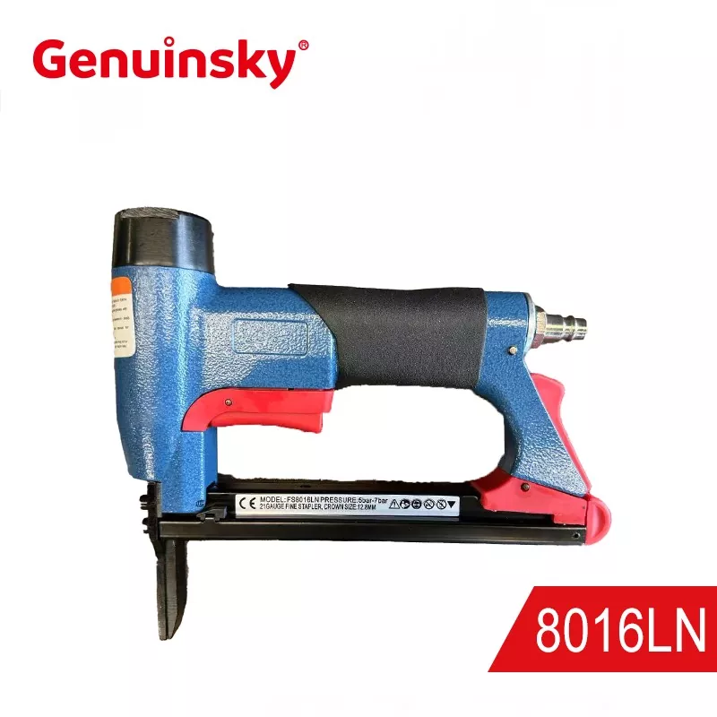 A 8016ln (hosszú orr) levegő finom korona tűzőgép a 8016 sorozatú Staplerhez tartozik, amelynek hosszú orra van, hogy megfeleljen a különleges felhasználásnak. A hosszú orr kialakítása keskeny terekbe terjedhet, elkerülve az elmozdulást, biztosítva a pontos és stabil működést, valamint a nagy hatékonyságot. Az U alakú körmök vagy ajtó körmök rögzítésére szolgáló tűzőgép pneumatikus eszközök, például légkompresszorok révén rögzítve az U alakú körmöket. Elsősorban kanapé -szövetek vagy bőr anyagok feldolgozására és gyártására, valamint az anyag splicing gyors tételének feldolgozására használják. Alapvető eszköz a bőrfeldolgozó gyárakhoz és a bútorgyárakhoz.