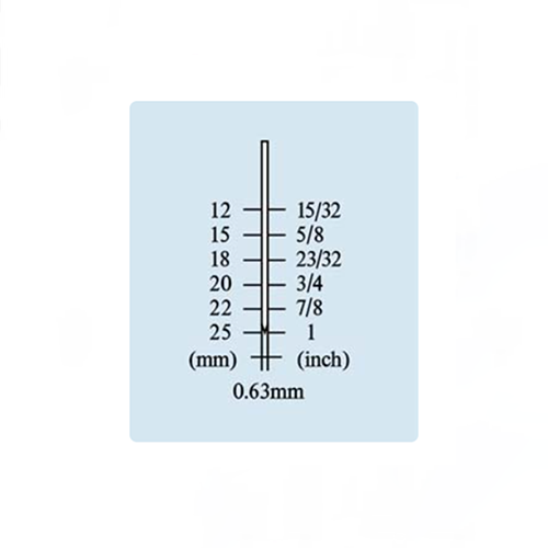 Az MP625A AIR mikro-pinner köröm- vagy csapmérete kicsi és vékony, 12-25 mm-es méretű (15/32-1 hüvelyk), GA23, DIA. 0,63 mm.