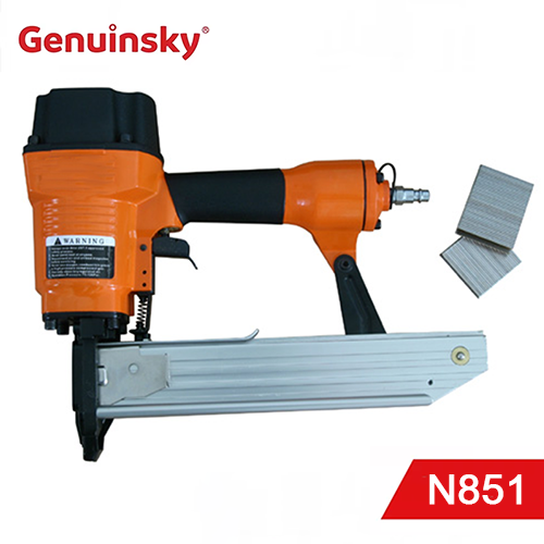 Az N851 Air Crown Stapler az ipari minőségű korona tűzőgéphez tartozik, nagy testtel és nagy kapcsokkal. Az U alakú körmöket vagy az ajtó körmöket az anyagok felületéhez, például a légkompresszorokon történő rögzítésére használják. Elsősorban kanapé szövetek vagy bőr anyagok feldolgozására és gyártására, valamint az anyag splicing gyors tételének feldolgozására használják. Alapvető eszköz a bőrfeldolgozó gyárakhoz és a bútorgyárakhoz.