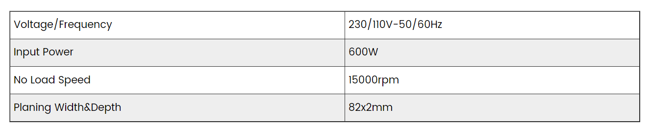 A82x2mm-es elektromos gyaluáltal elindított Genuinsky hatékony asszisztens a fafeldolgozó gyártás és lakberendezés területén. Az ezeken a területeken működő szerszámok kiváló teljesítményt és minőséget igényelnek. Az elektromos gyalu 600 W erős teljesítménnyel, 15000 ford./perc üresjárati fordulatszámmal, 82×2 mm-es gyalulási specifikációkkal és 230/110V-50/60 Hz széles feszültséggel rendelkezik. Ezek a termékek alapvető eszközzé teszi a területenfamegmunkálás.