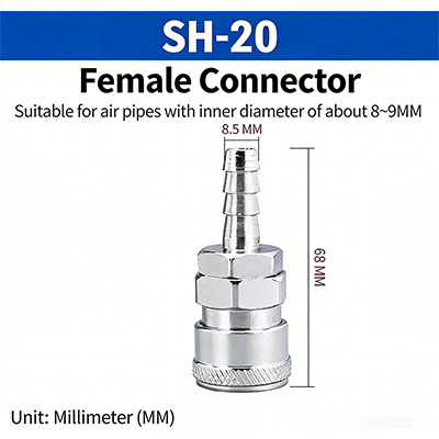 A PH–SH sorozatú C-típusú gyorscsatlakozók JIS PT-vel A Genuinsky által gyártott menet C-típusú gyorscsatlakozó szerkezettel rendelkezik. A férfi és női fejek tetszés szerint párosíthatók, a felületkezelés és a rézmag pedig tartósabbá teszi a terméket. A pneumatikus szerszám-tartozékok professzionális szállítójaként Kínában a Genuinsky termékei szabványosított gyártásúak. Ez a terméksorozat teljes specifikációkkal rendelkezik, és pontosan illeszkedik a különböző pneumatikus csővezetékekhez.