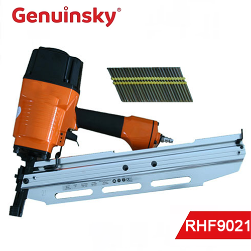 Az RHF9021 kerek keretező körmező egy professzionális pneumatikus körömpisztoly, amelyet Ningbo Genuinsky fejlesztett ki és gyárt. A szögelő test alumínium-sajtolóból, könnyű, nagy keménységből, nagy dugattyúból és erős erőből készül. A tényleges felhasználói élmény alapján a terméket 360 fokos kipufogó rendszerrel frissítették, hogy megakadályozzák a por repülését. A fúvóka érintkezési biztonsági struktúrája védi a munkabiztonságot. A körömfegyver szájának gumi védőfedele van felszerelve, amely nem árt a működő felületnek. A termék belsőleg egy integrált dugattyút használ, amelynek jó minőségű, nagy hatékonyságú, folyamatosan és gyorsan képes körömölni, és hosszú élettartamú.