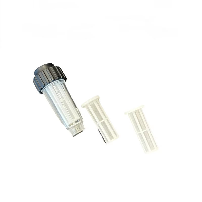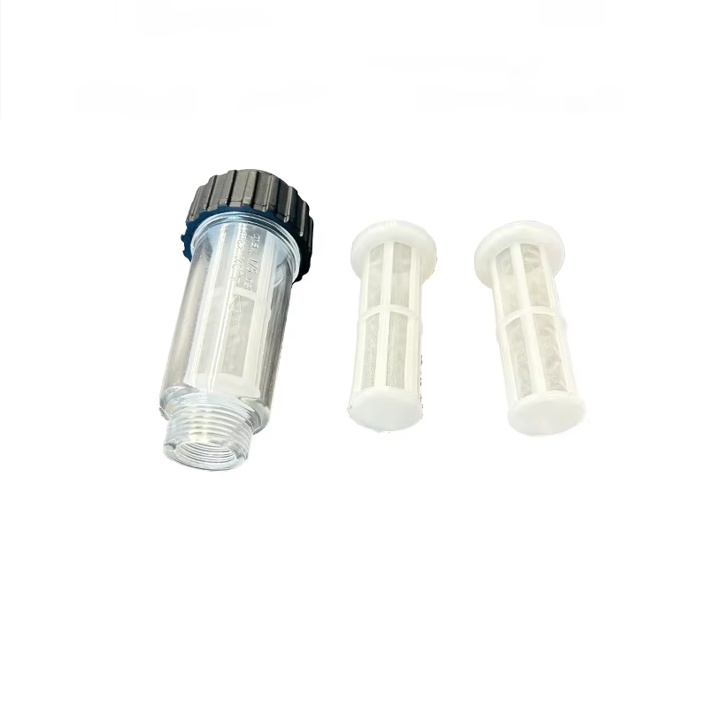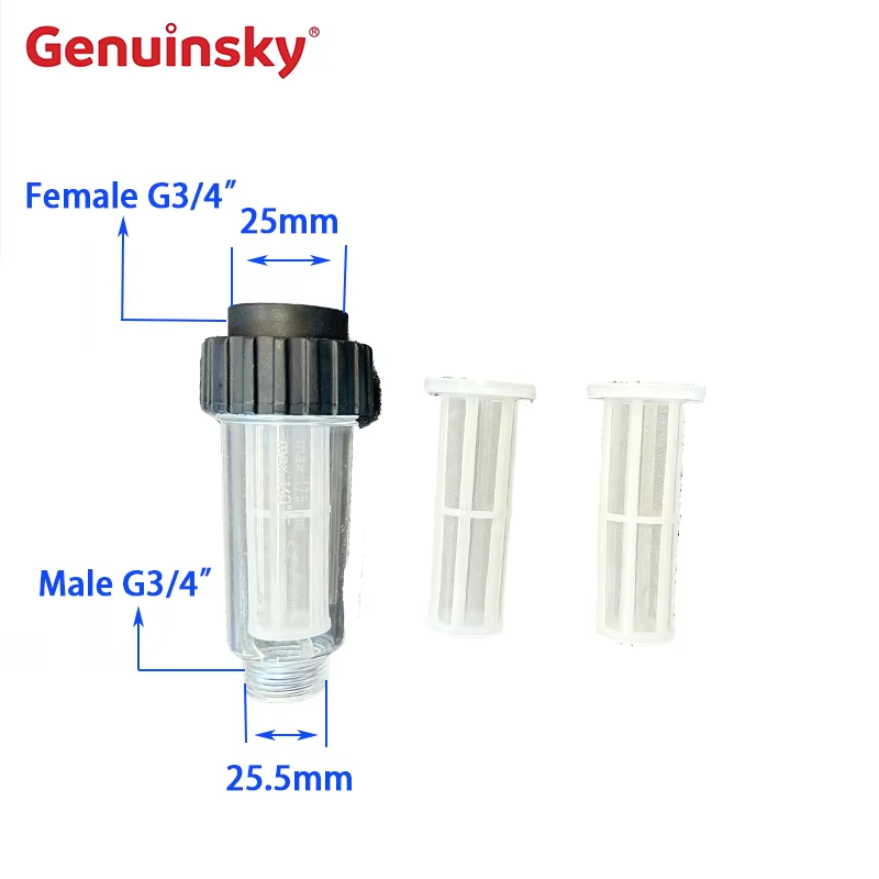 A termék két szűrőképessége elérheti az osztályozott szűrést és javíthatja a szűrés hatékonyságát a szűrési folyamat során. A szűrő anyaga nagyon jó, és a szűrési képesség is nagyon erős. Használat közben pontosan ki tudja szűrni a szennyeződéseket és a szennyeződéseket a folyó vízben. Ez a kialakítás hosszabbá teheti a gép szerviz élettartamát is, így csökkentheti a csere költségeit. A terméktest átlátszó anyagból készül, és az átlátszó héj kényelmesebbé teheti a felhasználók számára, hogy bármikor ellenőrizhessék a felhasználást, időben tisztítsák meg a szennyeződéseket, és a szűrőt a felhasználás szerint cseréljék, hogy a berendezés stabilan használható legyen. Ugyanakkor van egy fekete forgó fedél a tetején, amely sokkal kényelmesebb a csere és a tisztítás szempontjából.
